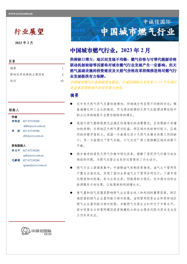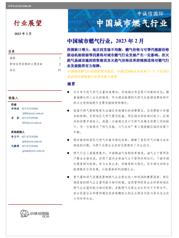 【中诚信国际】【202302】中国城市燃气行业-18页