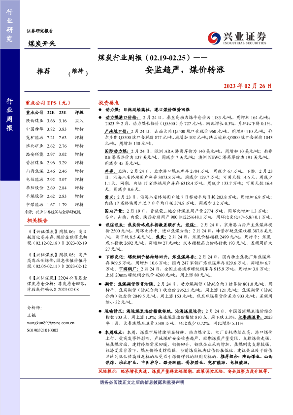 【兴业证券】【20230226】20230226-兴业证券-煤炭行业周报:安监趋严,煤价转涨-12页