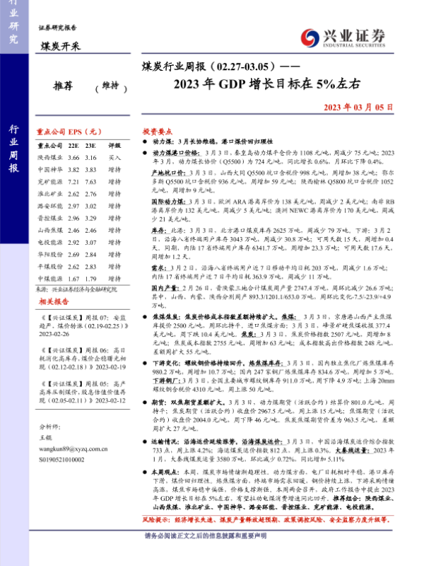 【兴业证券】【20230305】20230305-兴业证券-煤炭行业周报:2023年GDP增长目标在5%左右-12页