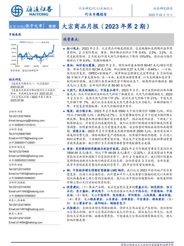 【海通证券】【20230311】20230311-海通证券-石油化工行业专题报告:大宗商品月报(2023年第2期)-25页