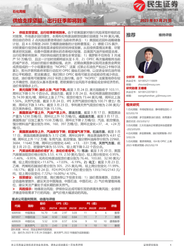 【民生证券】【20230325】石化周报:供给支撑坚挺,出行旺季即将到来-30页