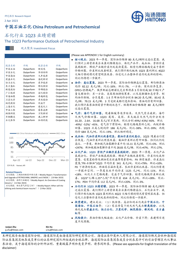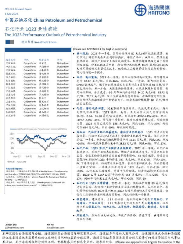 【海通国际】【20230402】石化行业1Q23业绩前瞻-11页