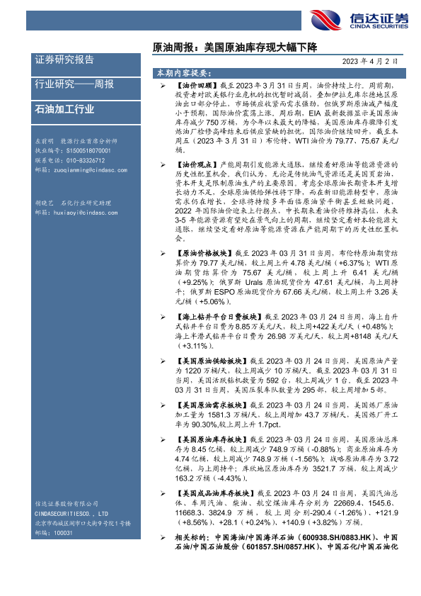 【信达证券】【20230402】原油周报:美国原油库存现大幅下降-27页