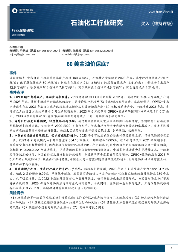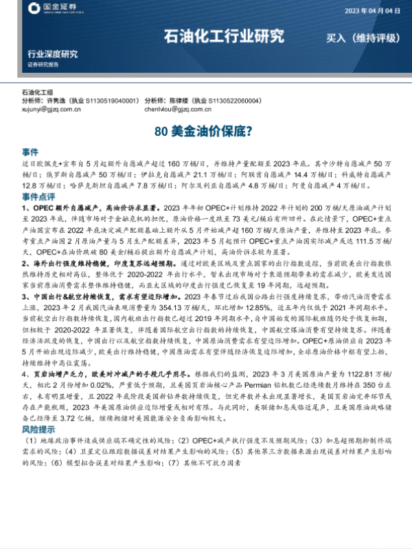 【国金证券】【20230404】石油化工行业研究:80美金油价保底?-22页