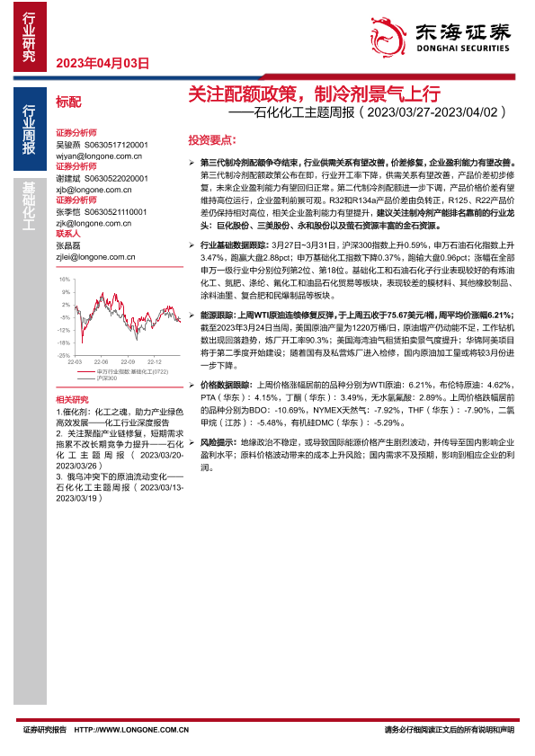 【东海证券】【20230403】20230403-东海证券-石化化工主题周报:关注配额政策,制冷剂景气上行-25页
