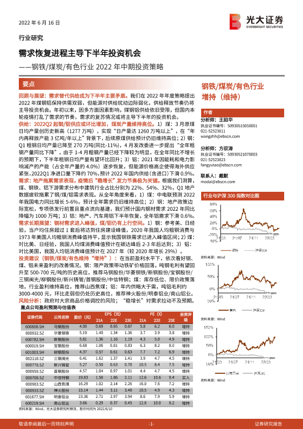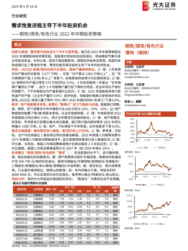 【光大证券】【20220616】钢铁煤炭有色行业2022年中期投资策略:需求恢复进程主导下半年投资机会-63页