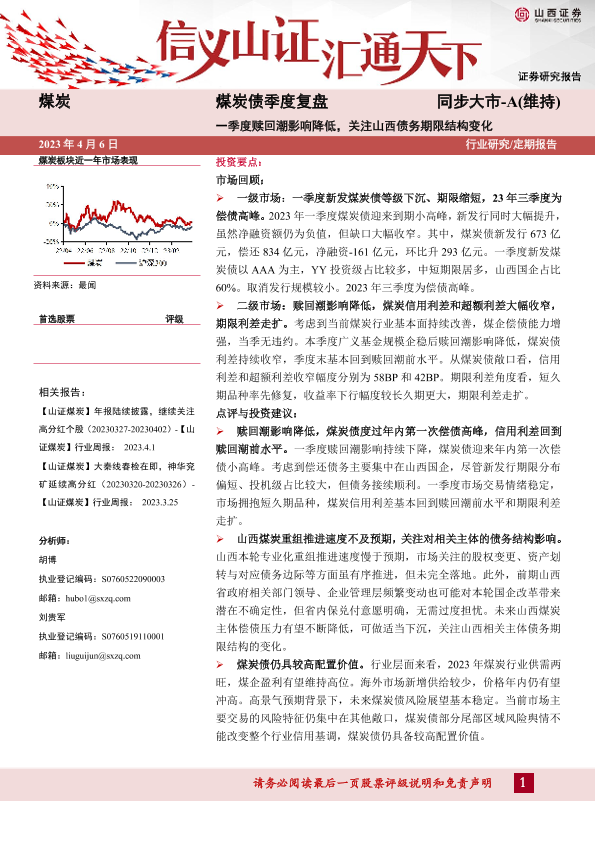 【山西证券】【20230406】20230406-山西证券-煤炭债季度复盘:一季度赎回潮影响降低,关注山西债务期限结构变化-10页