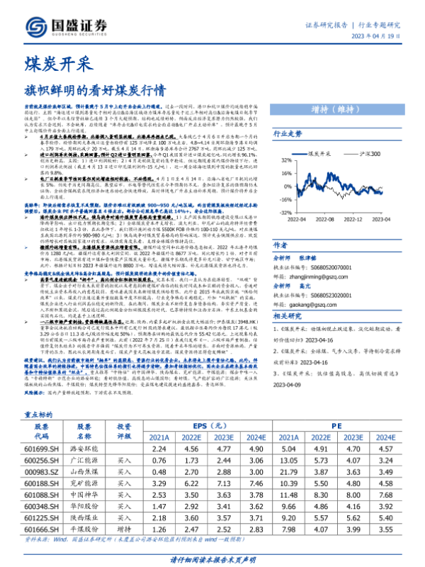 【国盛证券】【20230419】20230419-国盛证券-煤炭开采行业专题研究:旗帜鲜明的看好煤炭行情-14页