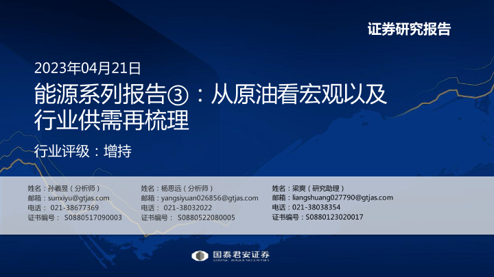 【国泰君安证券】【20230421】能源系列报告③:从原油看宏观以及行业供需再梳理-56页