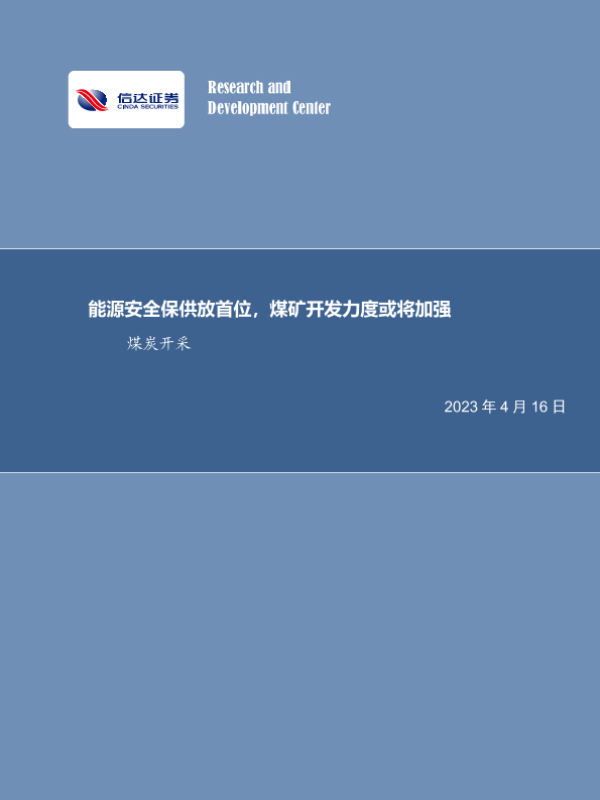 【信达证券】【20230416】20230416-信达证券-煤炭开采行业周报:能源安全保供放首位,煤矿开发力度或将加强-28页