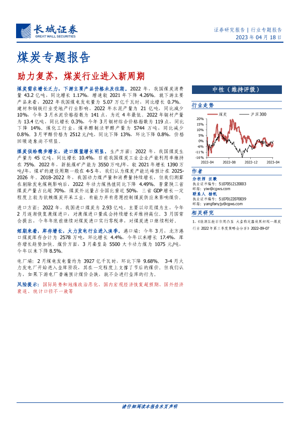 【长城证券】【20230418】20230418-长城证券-煤炭专题报告:助力复苏,煤炭行业进入新周期-16页