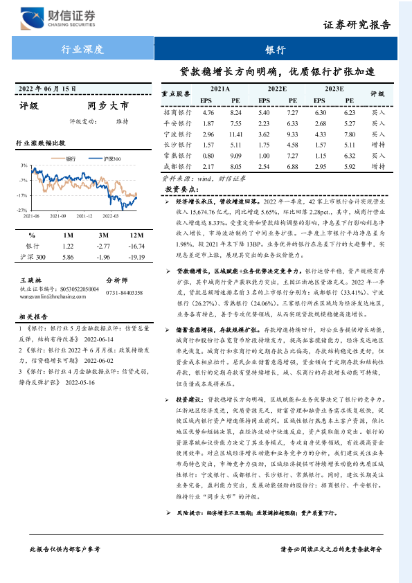 【财信证券】【20220615】银行业深度:贷款稳增长方向明确,优质银行扩张加速-17页