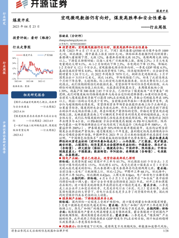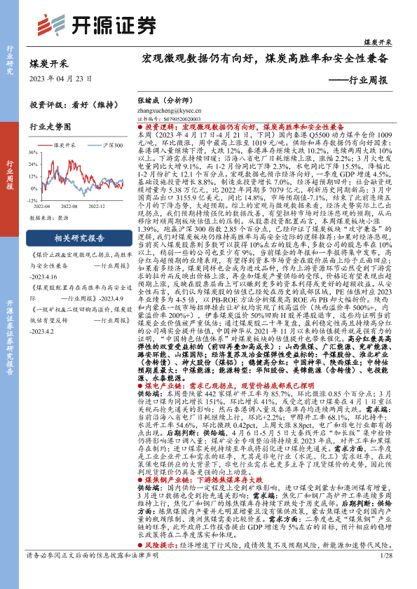 【开源证券】【20230423】20230423-开源证券-煤炭开采行业周报:宏观微观数据仍有向好,煤炭高胜率和安全性兼备-28页