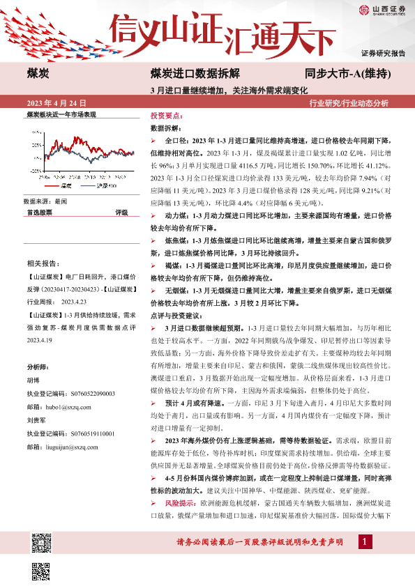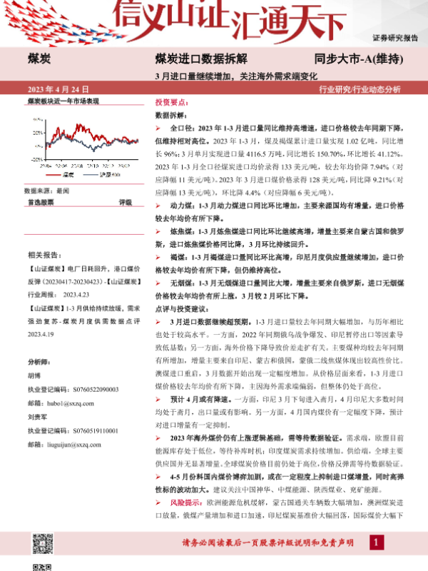 【山西证券】【20230424】煤炭进口数据拆解:3月进口量继续增加,关注海外需求端变化-12页