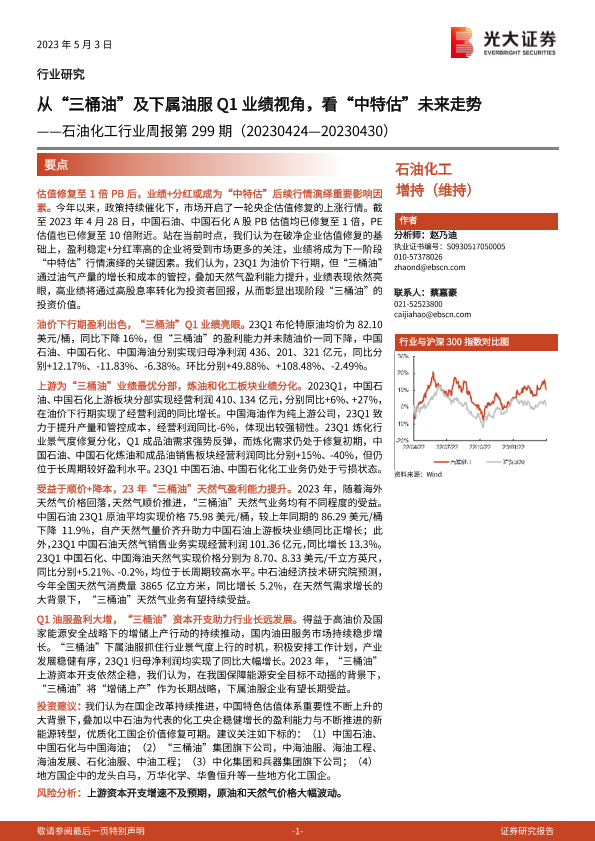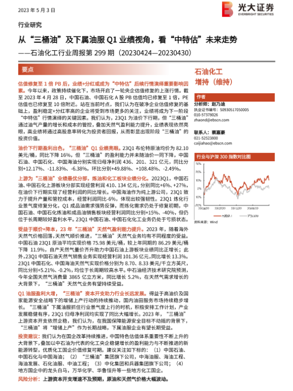 【光大证券】【20230503】20230503-光大证券-石油化工行业周报第299期:从“三桶油”及下属油服Q1业绩视角,看“中特估”未来走势-22页