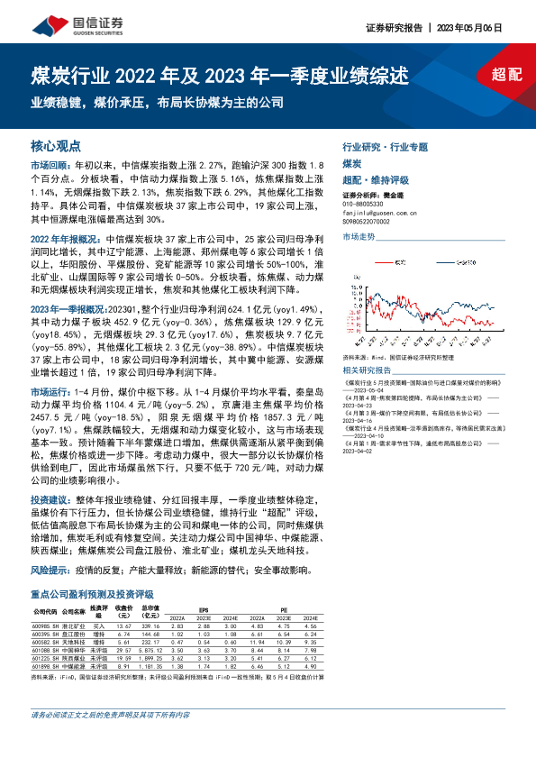 【国信证券】【20230506】煤炭行业2022年及2023年一季度业绩综述:业绩稳健,煤价承压,布局长协煤为主的公司-15页