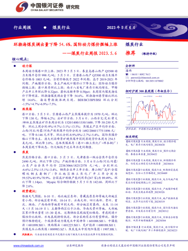 【银河证券】【20230506】20230506-中国银河-煤炭行业周报:环渤海煤炭调出量下降54.6%,国际动力煤价微幅上涨-21页