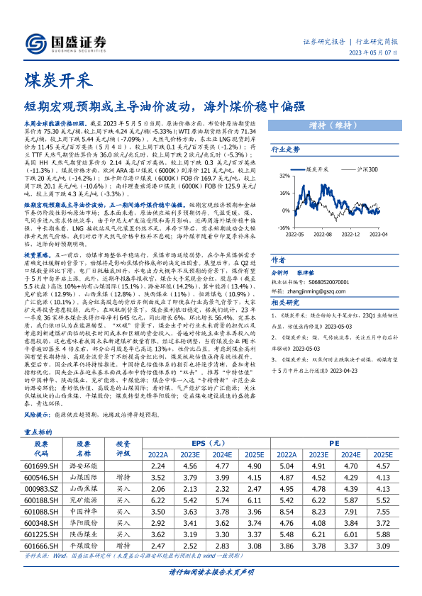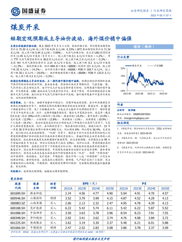 【国盛证券】【20230507】煤炭开采:短期宏观预期或主导油价波动,海外煤价稳中偏强-13页