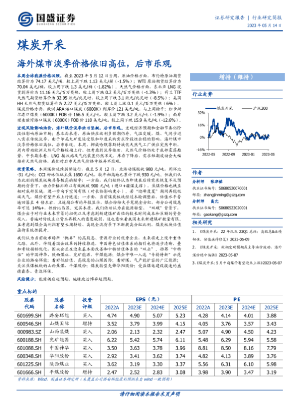 【国盛证券】【20230514】煤炭开采:海外煤市淡季价格依旧高位,后市乐观-13页