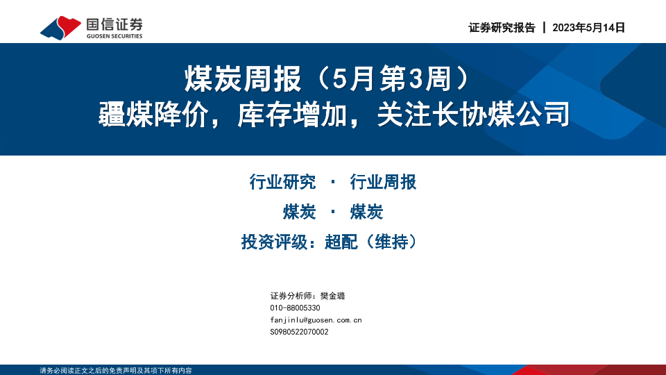 【国信证券】【20230514】20230514-国信证券-煤炭周报(5月第3周):疆煤降价,库存增加,关注长协煤公司-28页