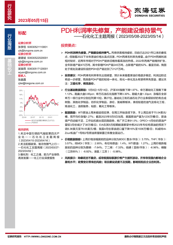 【东海证券】【20230515】20230515-东海证券-石化化工主题周报:PDH利润率先修复,产能建设维持景气-23页