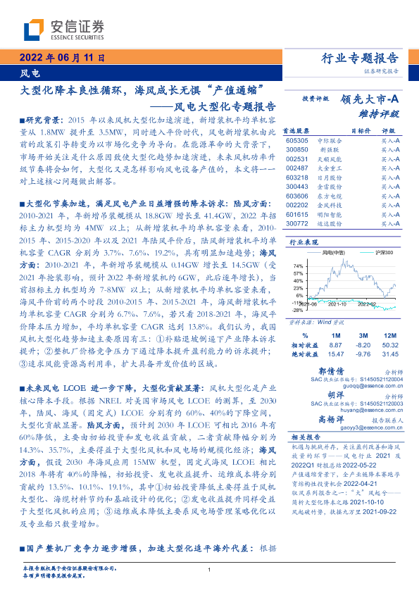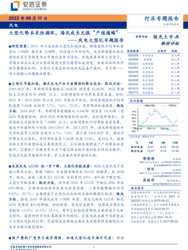 【安信证券】【20220611】风电行业大型化专题报告:大型化降本良性循环,海风成长无惧“产值通缩”-30页