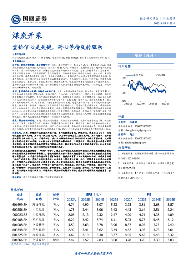 【国盛证券】【20230528】20230528-国盛证券-煤炭开采行业周报:重拾信心是关键,耐心等待反转驱动-18页