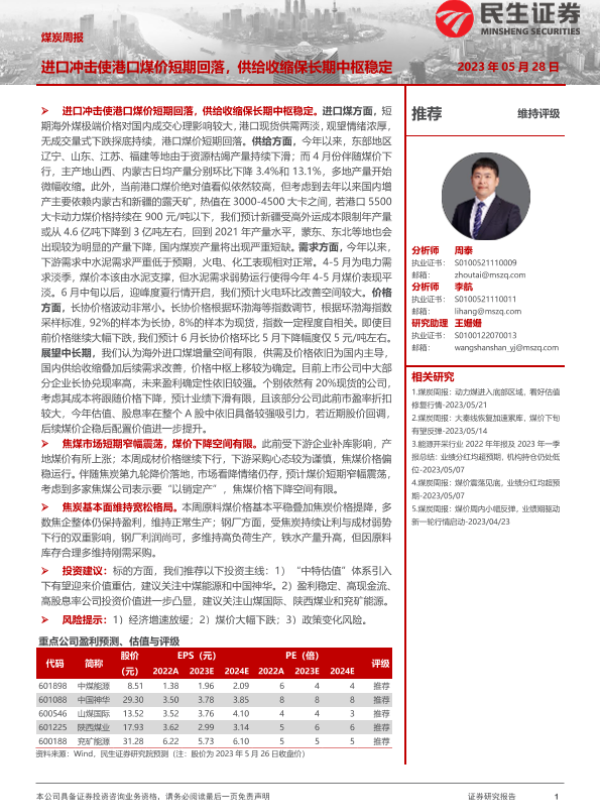 【民生证券】【20230528】20230528-民生证券-煤炭周报:进口冲击使港口煤价短期回落,供给收缩保长期中枢稳定-22页