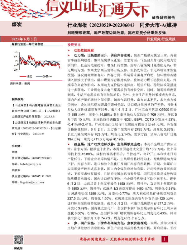 【山西证券】【20230603】煤炭行业周报:日耗继续走高,地产政策边际改善,黑色期货价格率先反弹-19页