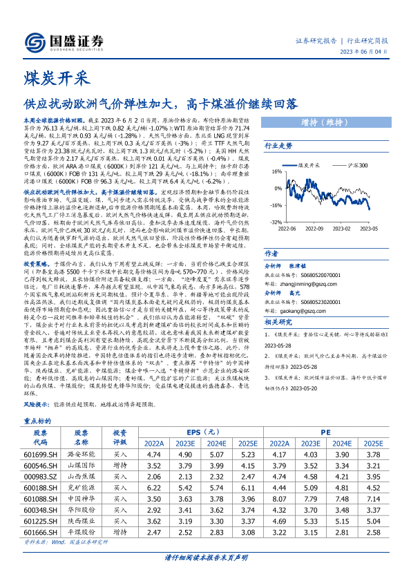【国盛证券】【20230604】煤炭开采:供应扰动欧洲气价弹性加大,高卡煤溢价继续回落-14页