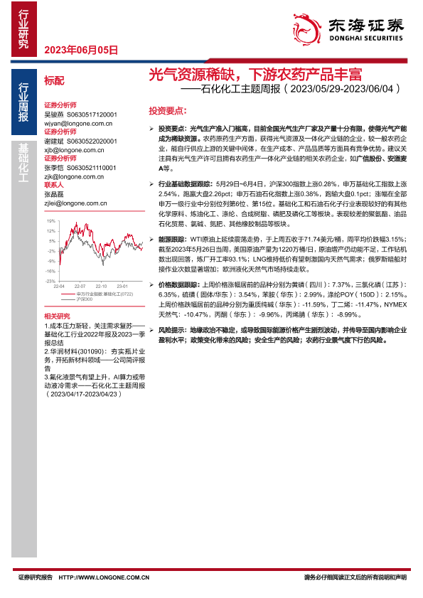 【东海证券】【20230605】20230605-东海证券-石化化工主题周报:光气资源稀缺,下游农药产品丰富-26页