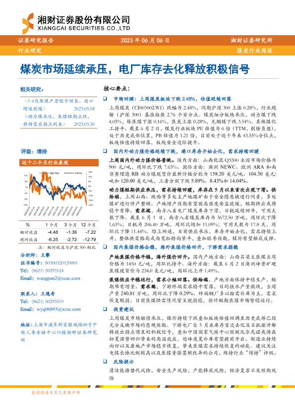 【湘财证券】【20230606】20230606-湘财证券-煤炭行业周报:煤炭市场延续承压,电厂库存去化释放积极信号-16页