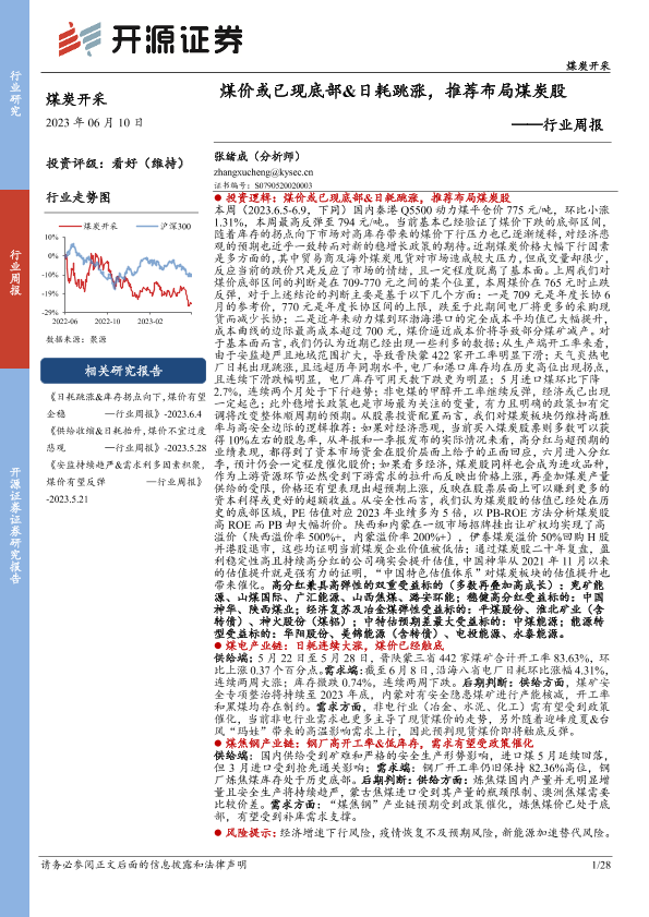【开源证券】【20230610】20230610-开源证券-煤炭开采行业周报:煤价或已现底部&日耗跳涨,推荐布局煤炭股-28页
