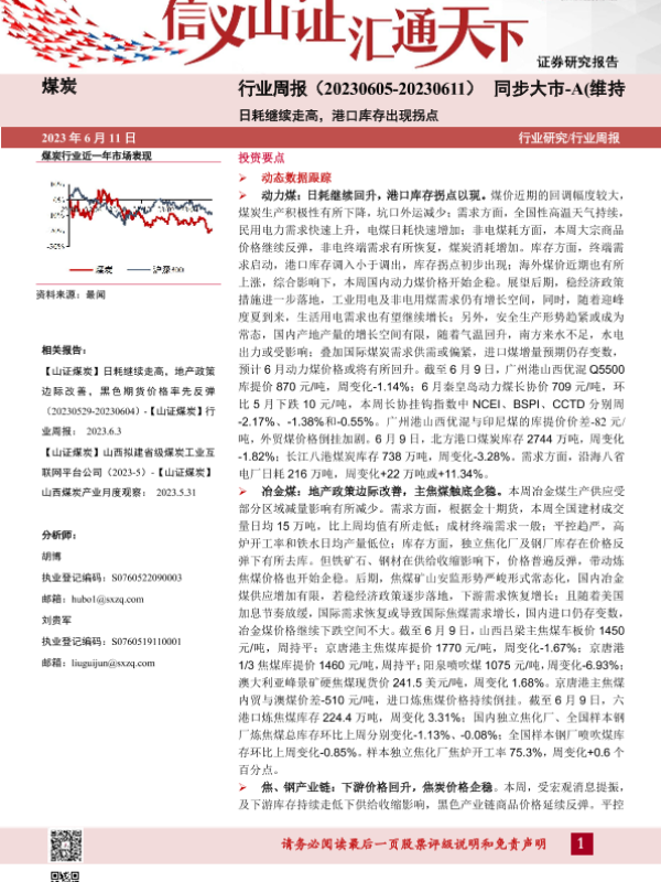 【山西证券】【20230611】20230611-山西证券-煤炭行业周报:日耗继续走高,港口库存出现拐点-19页