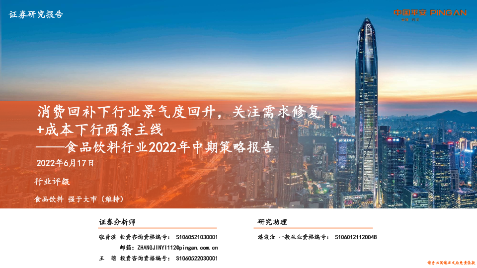 【平安证券】【20220617】食品饮料行业2022年中期策略报告:消费回补下行业景气度回升,关注需求修复+成本下行两条主线-34页