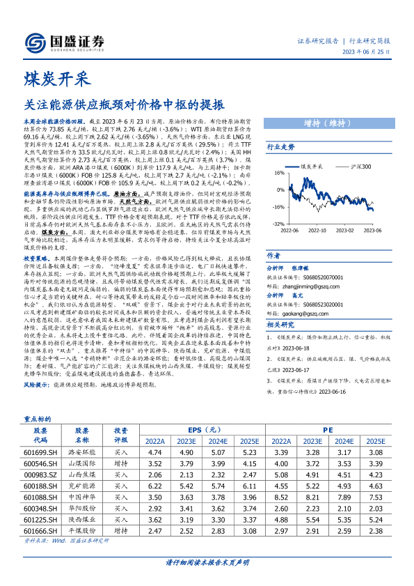价格分析 投资策略 煤炭开采 能源供应 证券研究