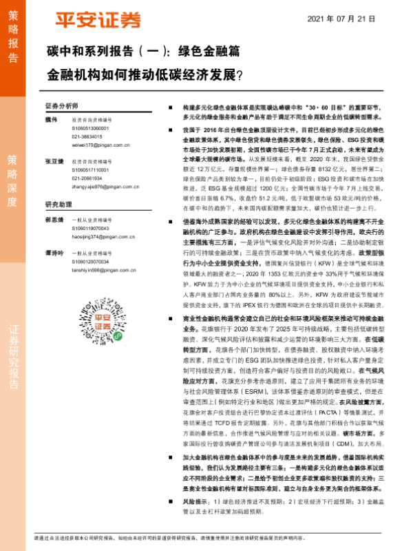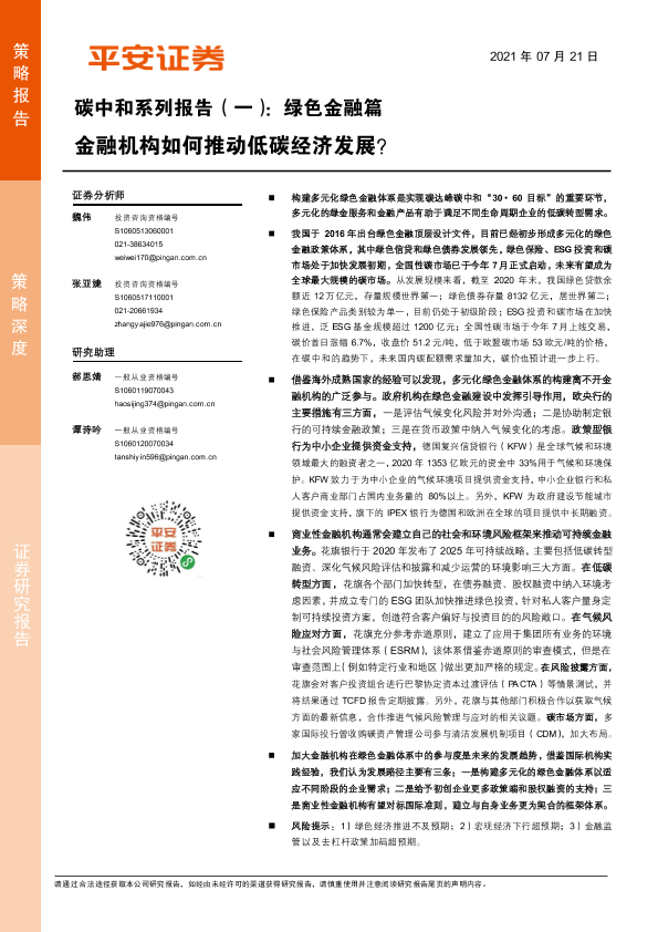 【平安证券】【20210721】碳中和系列报告(一):绿色金融篇,金融机构如何推动低碳经济发展?-18页