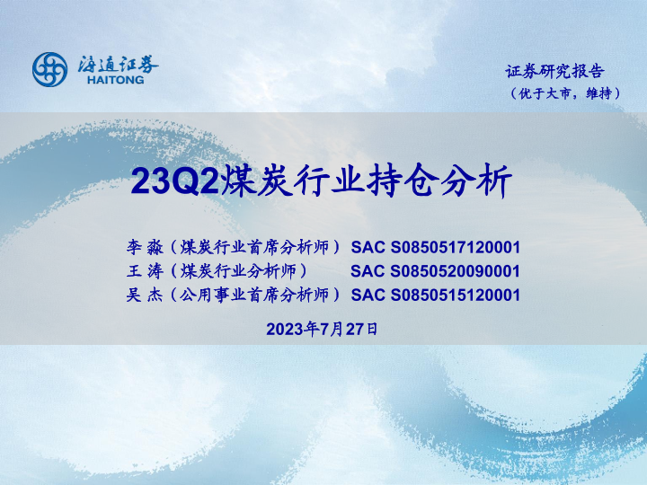 【海通证券】【20230727】23Q2煤炭行业持仓分析-11页