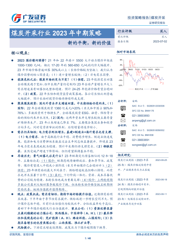 【广发证券】【20230702】煤炭开采行业2023年中期策略:新的平衡,新的价值-46页