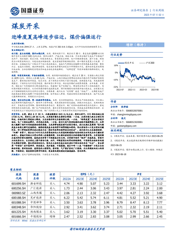 【国盛证券】【20230702】20230702-国盛证券-煤炭开采行业周报:迎峰度夏高峰逐步临近,煤价偏强运行-18页
