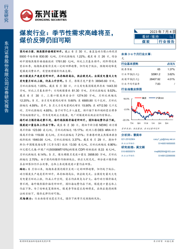 【东兴证券】【20230704】煤炭行业:季节性需求高峰将至,煤价反弹仍旧可期-13页