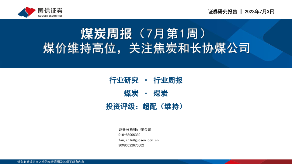 【国信证券】【20230703】20230703-国信证券-煤炭周报(7月第1周):煤价维持高位,关注焦炭和长协煤公司-28页