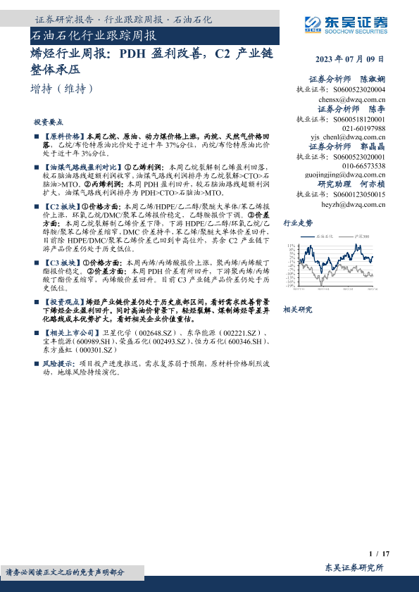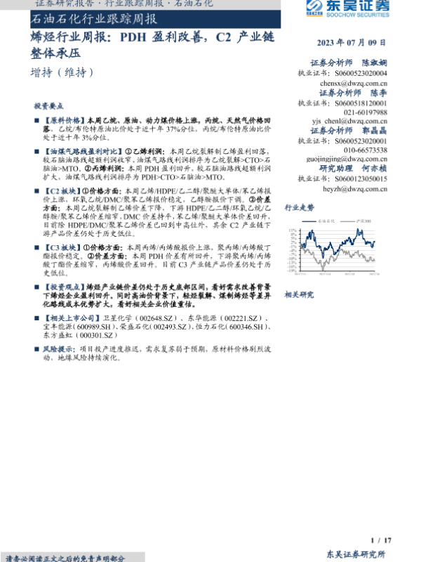【东吴证券】【20230709】20230709-东吴证券-烯烃行业周报:PDH盈利改善,C2产业链整体承压-17页