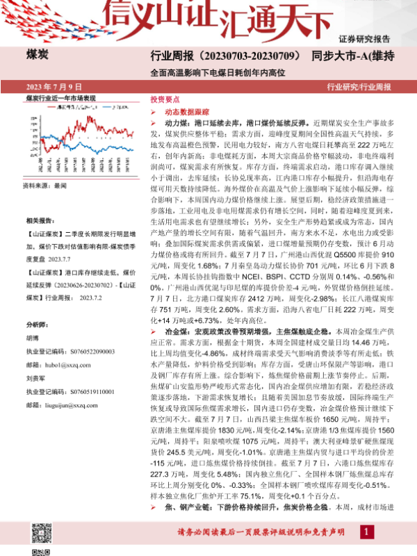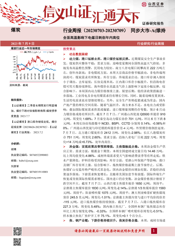 【山西证券】【20230709】煤炭行业周报:全面高温影响下电煤日耗创年内高位-19页