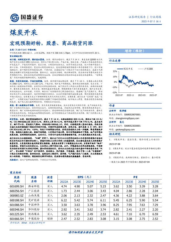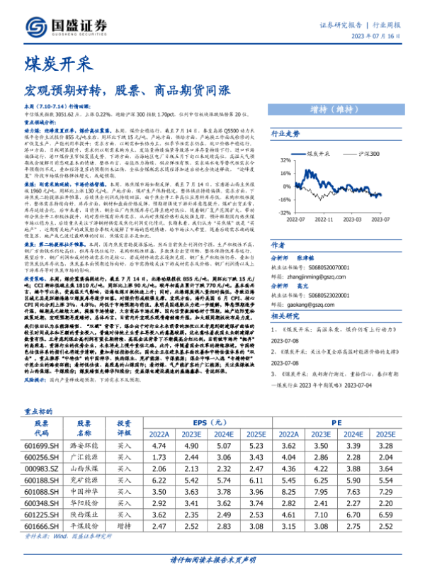 【国盛证券】【20230716】20230716-国盛证券-煤炭开采行业周报:宏观预期好转,股票、商品期货同涨-18页