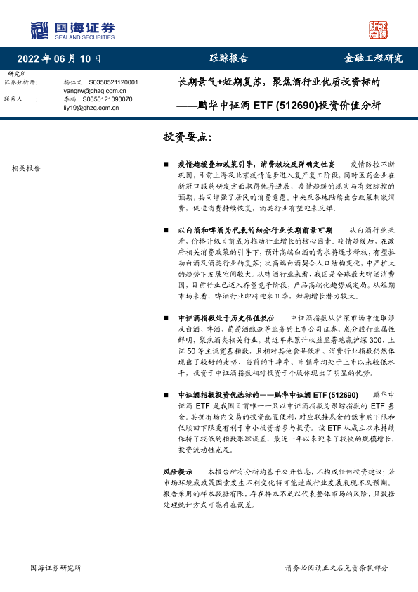 【国海证券】【20220610】鹏华中证酒ETF (512690)投资价值分析:长期景气+短期复苏,聚焦酒行业优质投资标的-24页