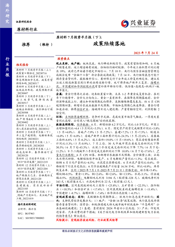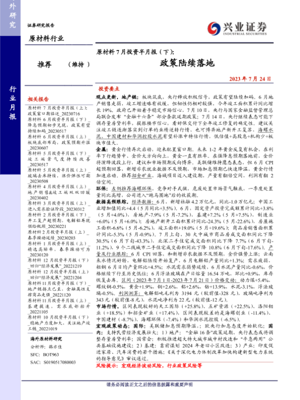 【兴业证券】【20230724】原材料7月投资半月报(下):政策陆续落地-26页