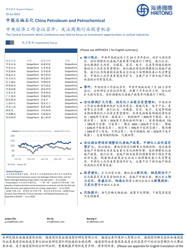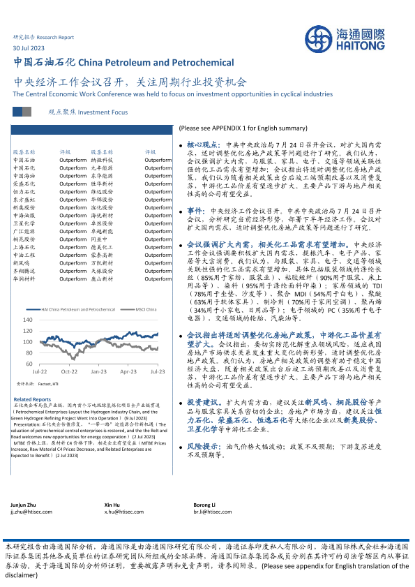 【海通国际】【20230730】中国石油石化:中央经济工作会议召开,关注周期行业投资机会-13页