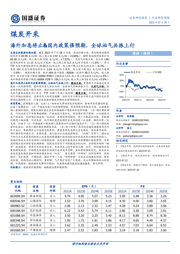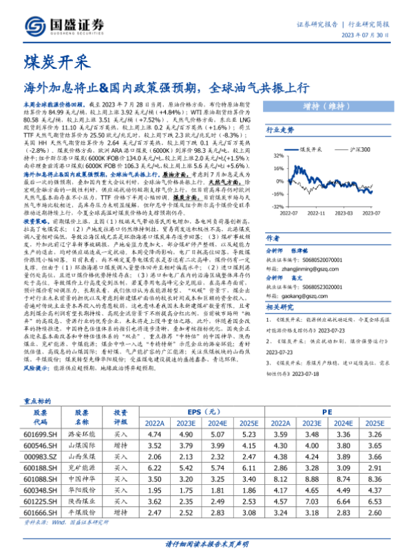【国盛证券】【20230730】煤炭开采:海外加息将止&国内政策强预期,全球油气共振上行-14页