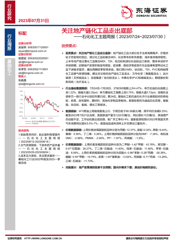 【东海证券】【20230731】20230731-东海证券-石化化工主题周报:关注地产链化工品走出底部-23页